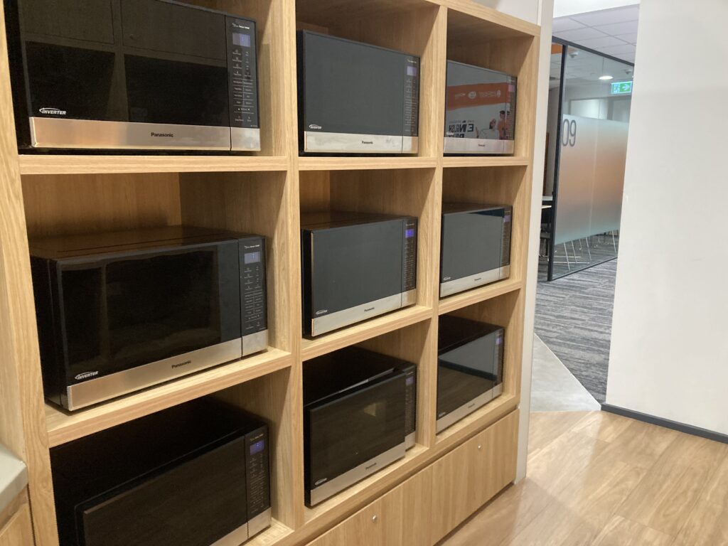 下記のようにキッチンも綺麗で、電子レンジも9個あります。